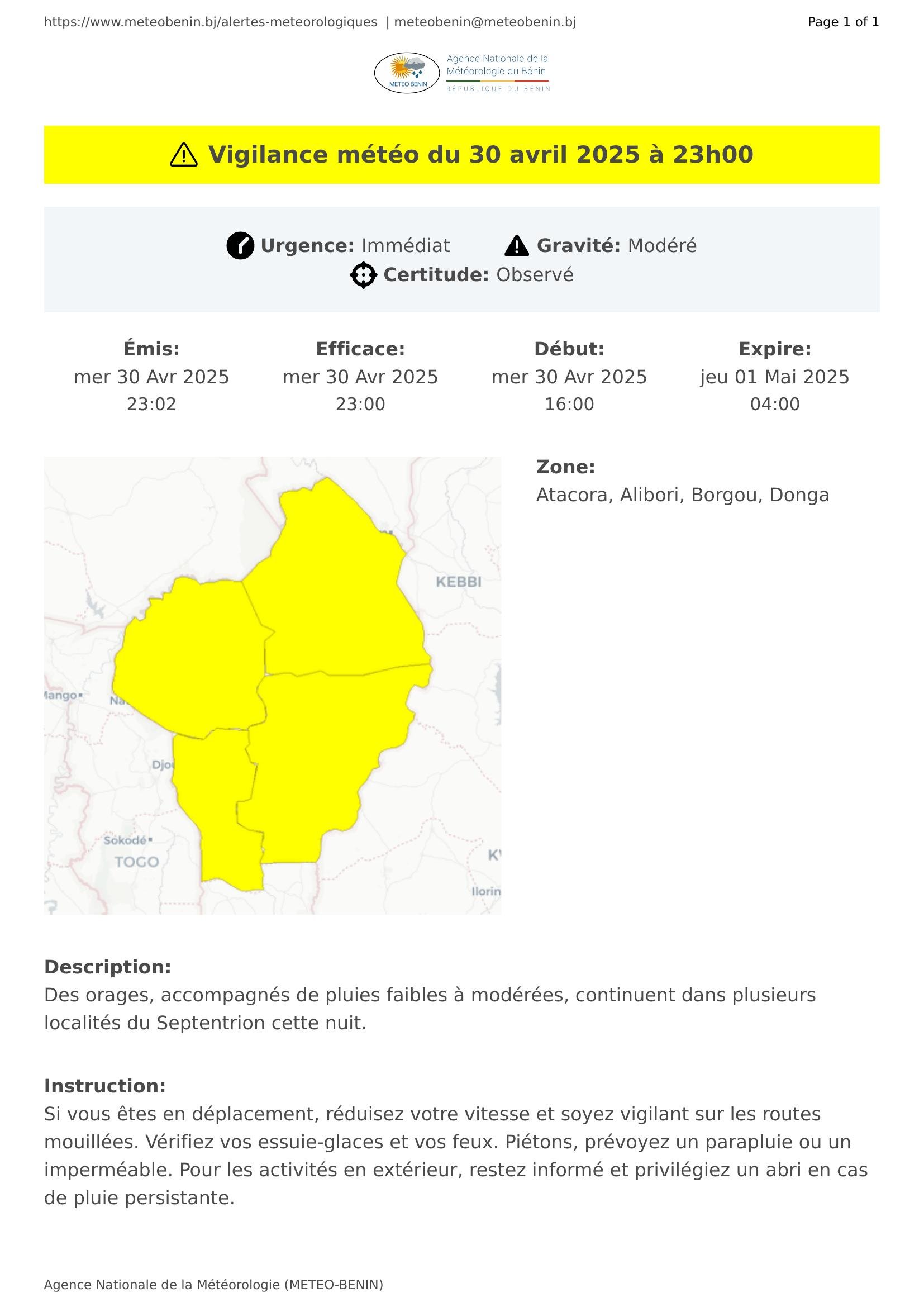 Vigilance météo du 30 avril 2025 à 16h40Vigilance face aux orages et pluies cette nuit au petit matin