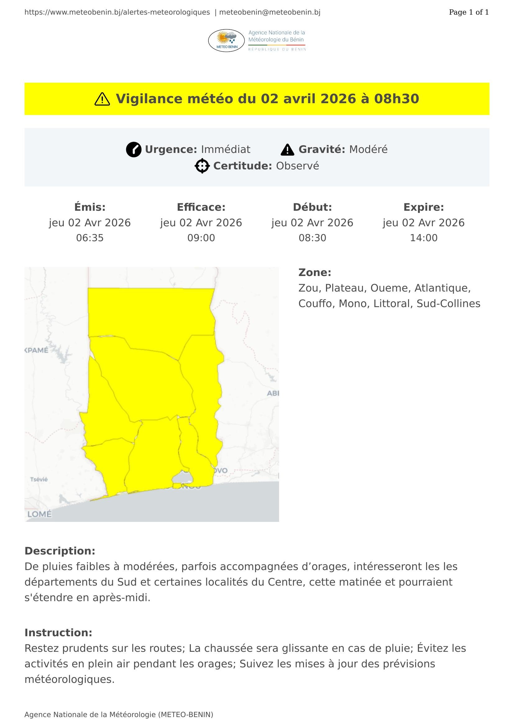 Vigilance météo du 02 avril 2026 à 08h30
