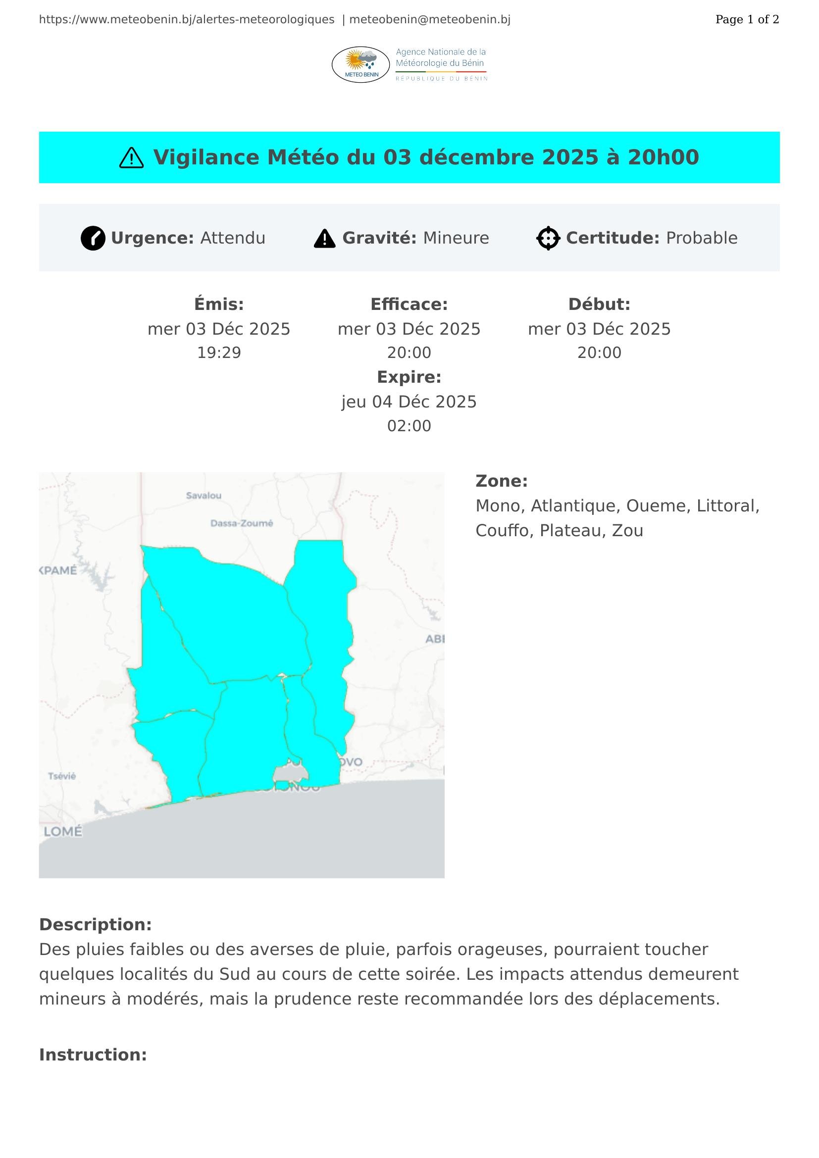 Vigilance Météo du 03 décembre 2025 à 20h00