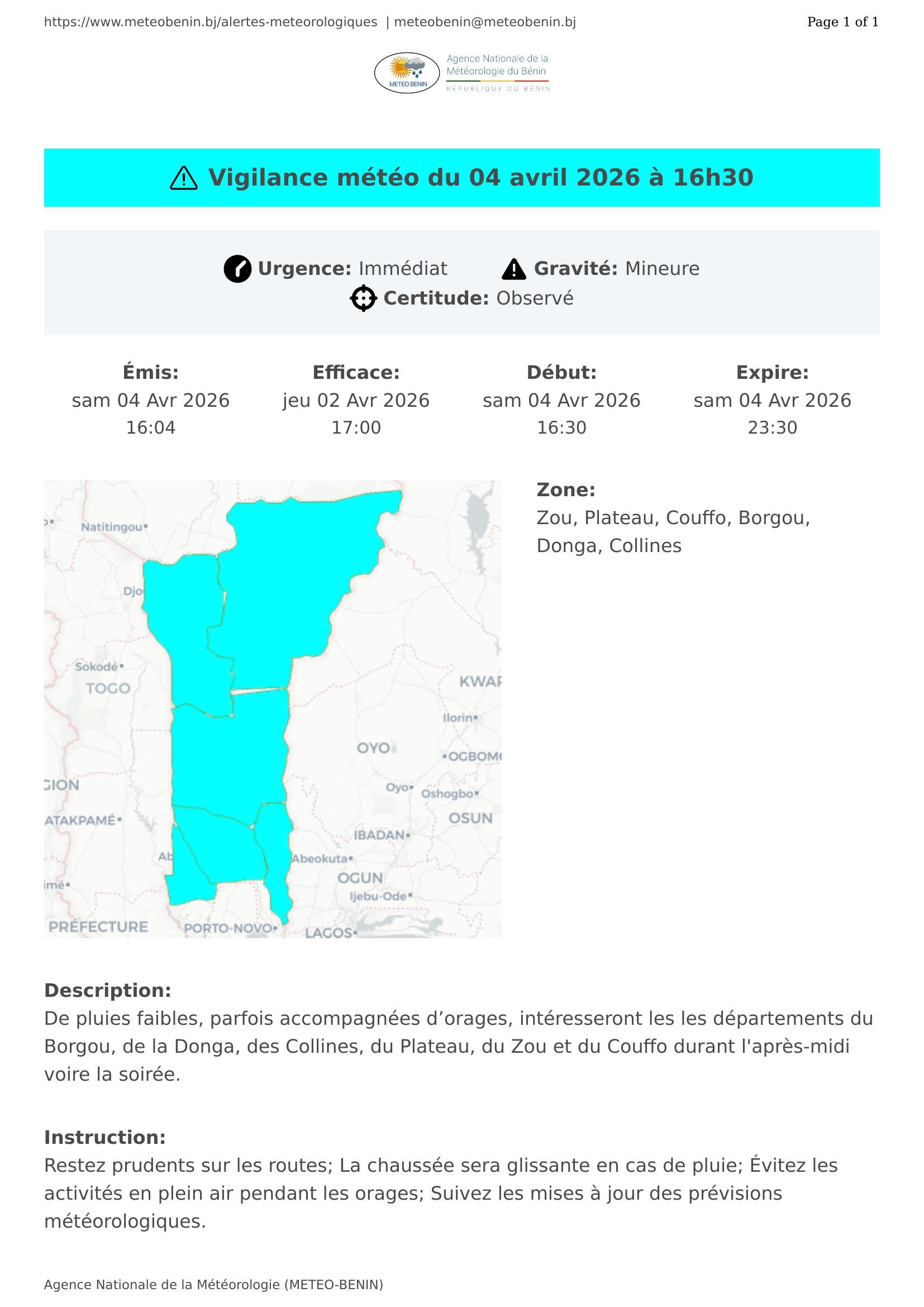 Vigilance météo du 04 avril 2026 à 16h30