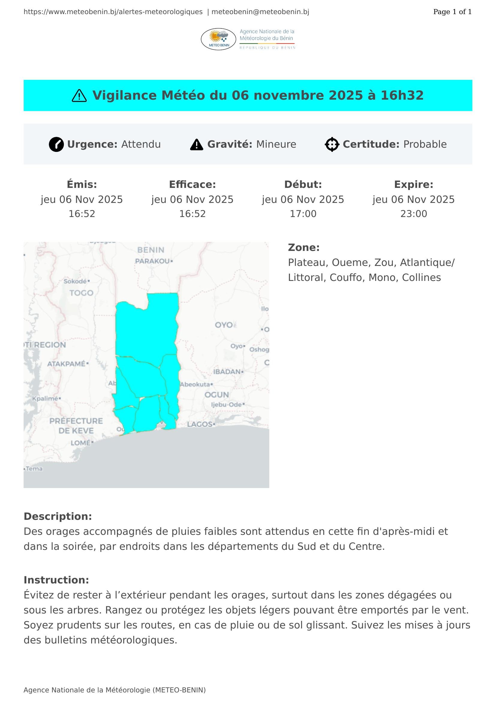 Vigilance Météo du 06 novembre 2025 à 16h32
