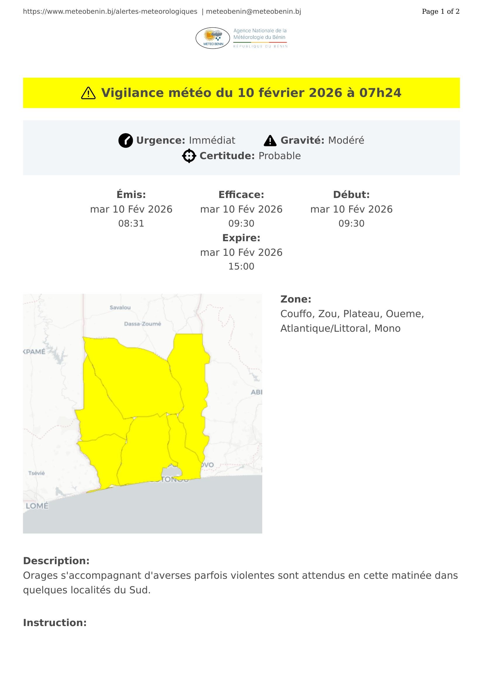 Orages s'accompagnant d'averses parfois violentes sont attendus en cette matinée dans quelques localités du Sud.