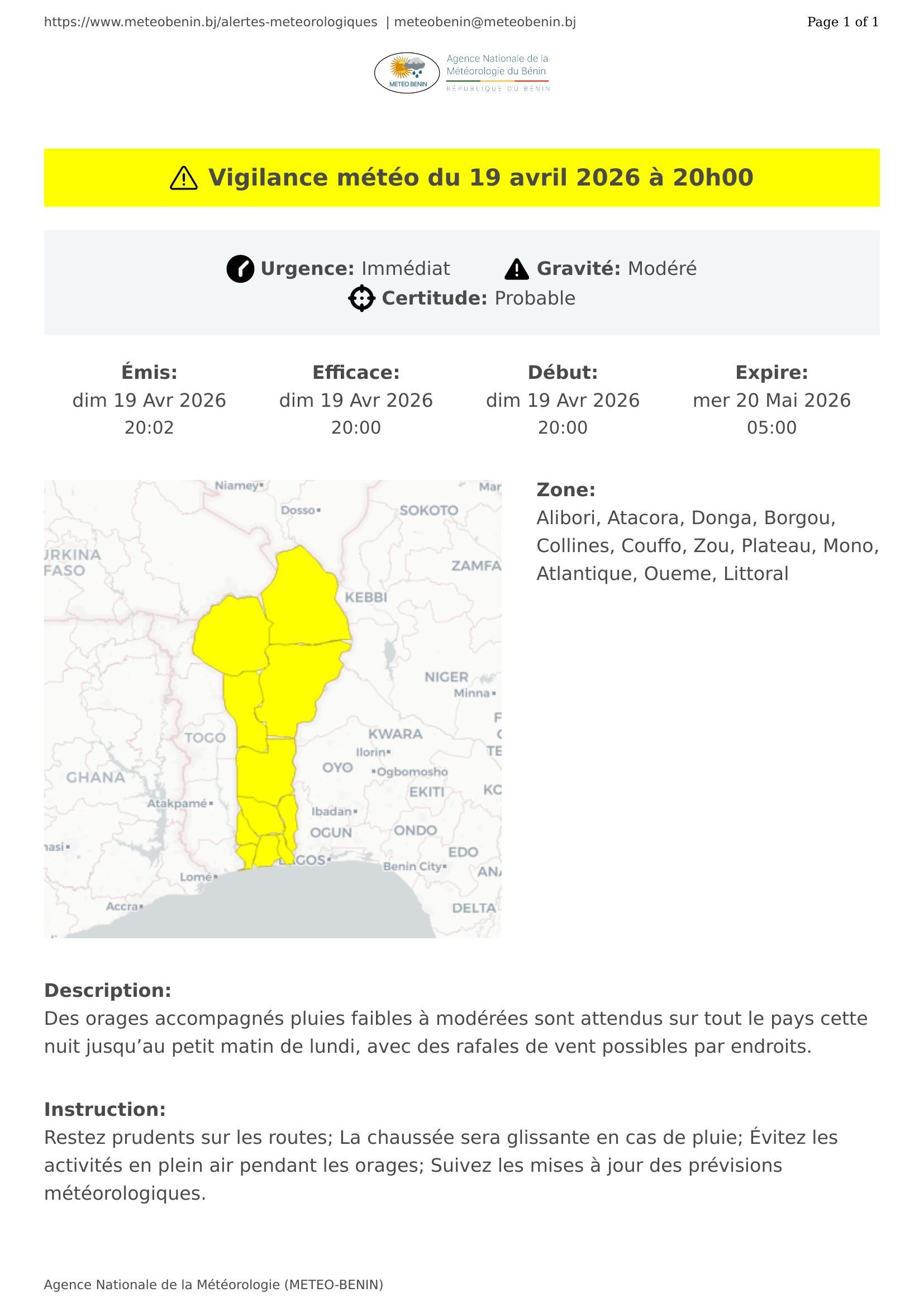 Des orages accompagnés pluies faibles à modérées sont attendus sur tout le pays cette nuit jusqu’au petit matin de lundi, avec des rafales de vent possibles par endroits.