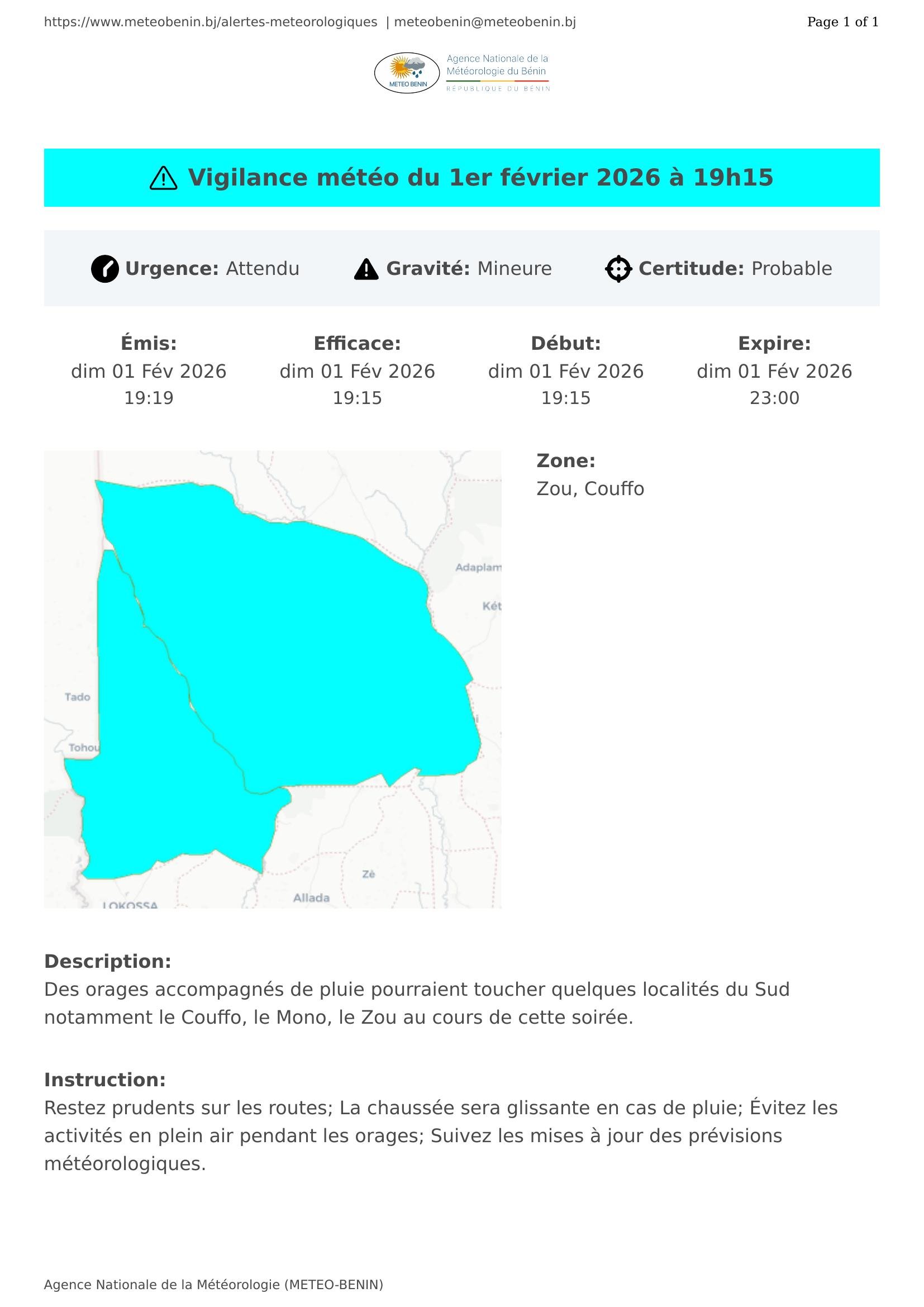Vigilance météo du 1er février 2026 à 19h15