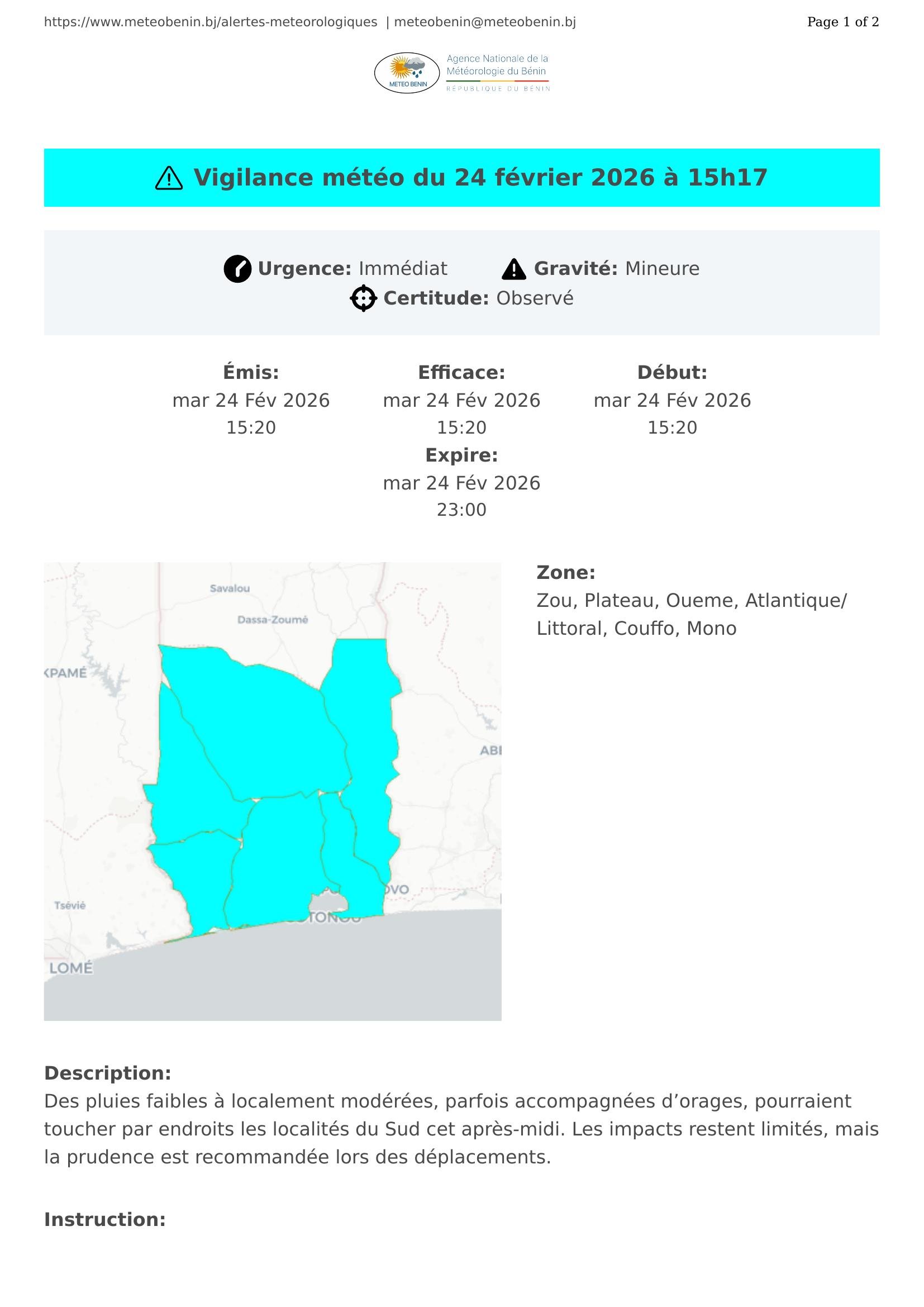 Des pluies faibles à localement modérées, parfois accompagnées d’orages, pourraient toucher par endroits les localités du Sud cet après-midi. Les impacts restent limités, mais la prudence est recommandée lors des déplacements.