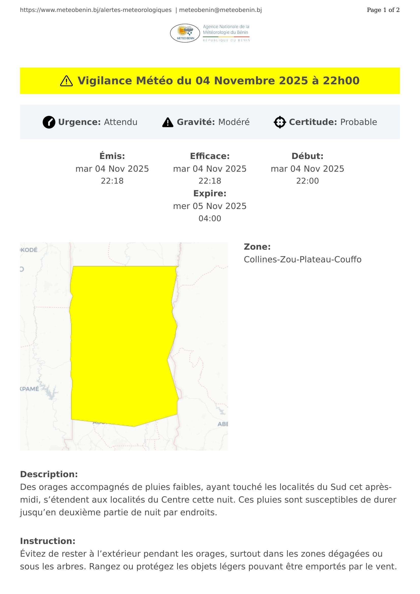 Vigilance Météo du 04 Novembre 2025 à 22h00