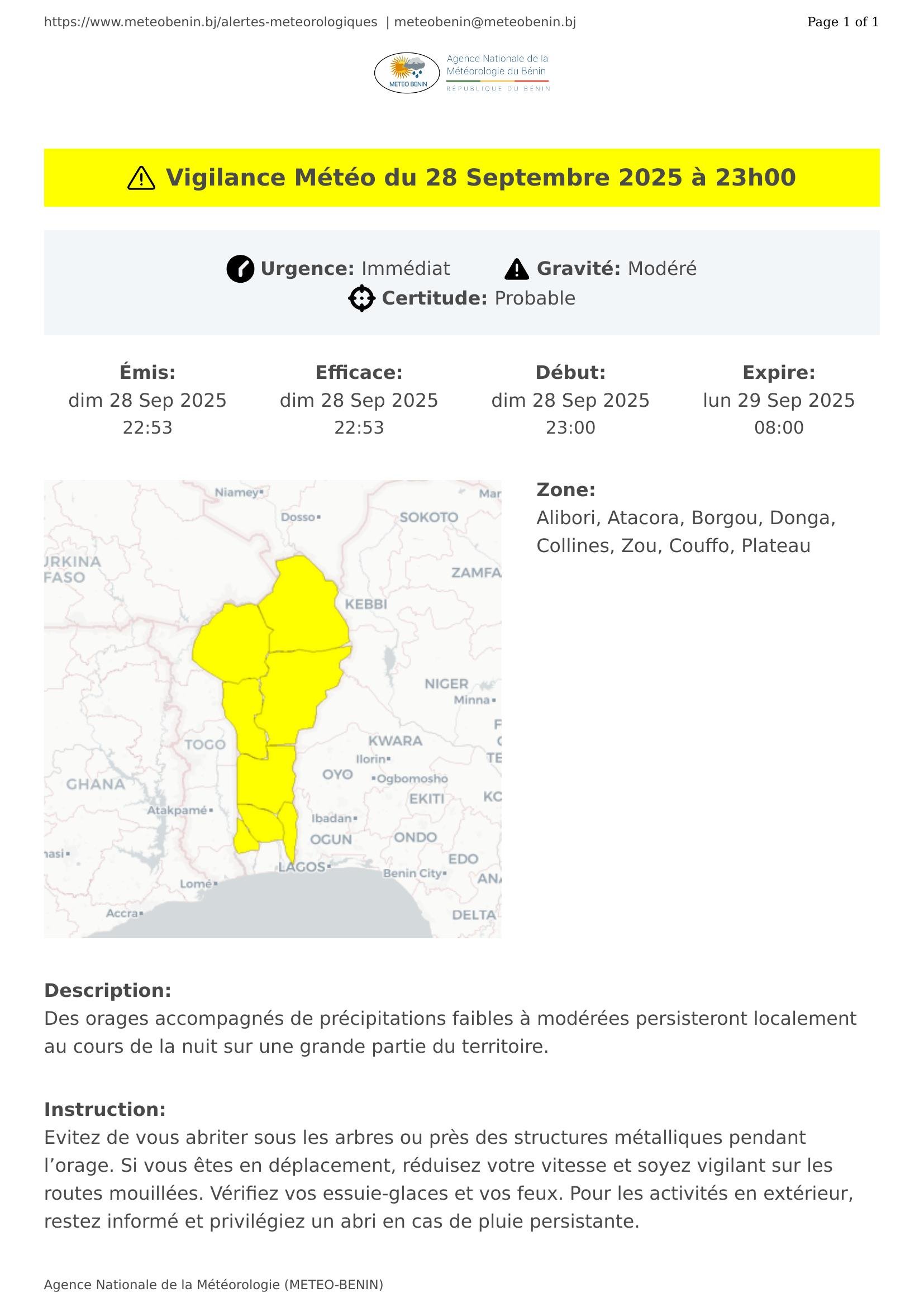 Vigilance Météo du 28 Septembre 2025 à 23h00