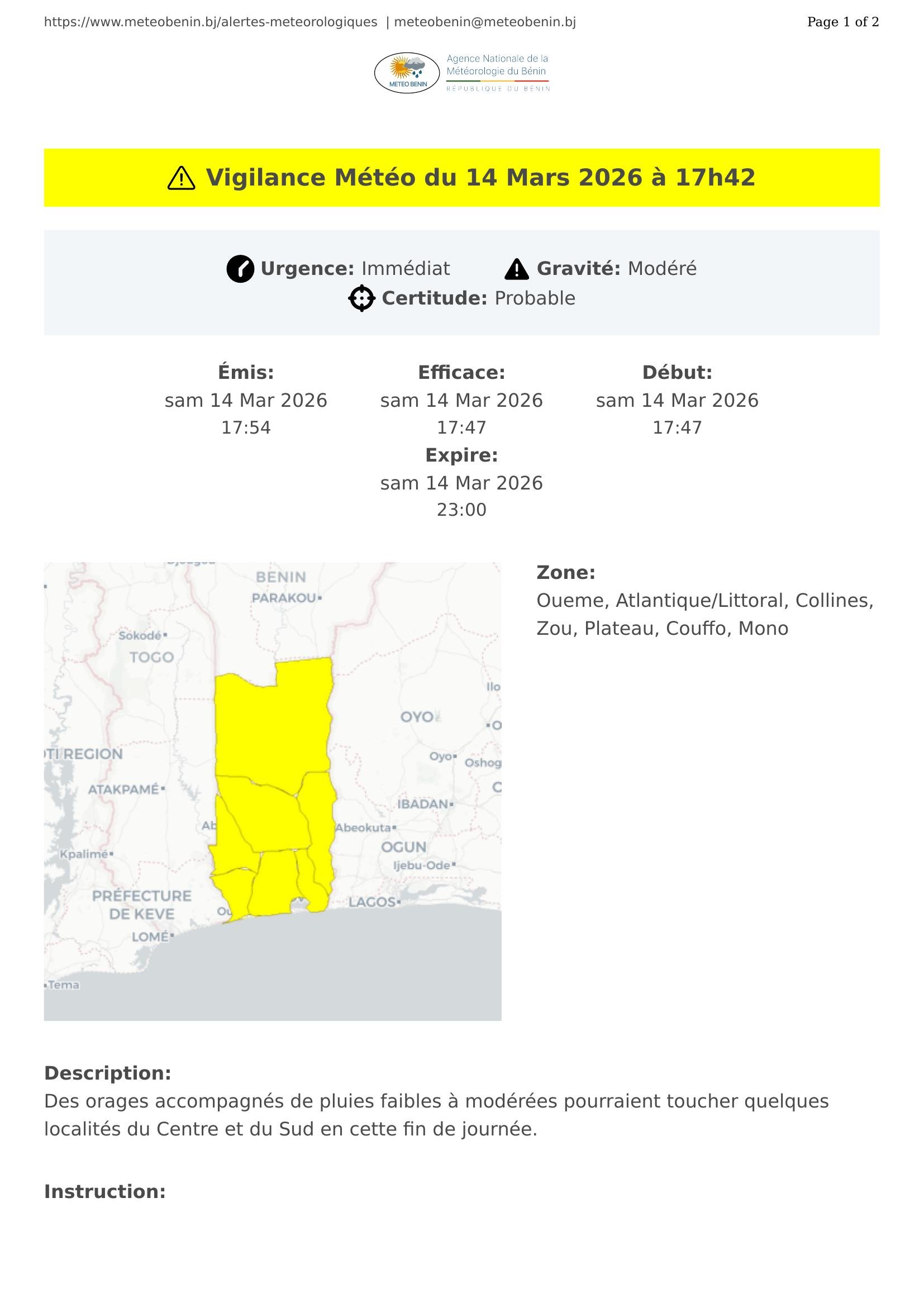 Vigilance Météo du 14 Mars 2026 à 17h42
