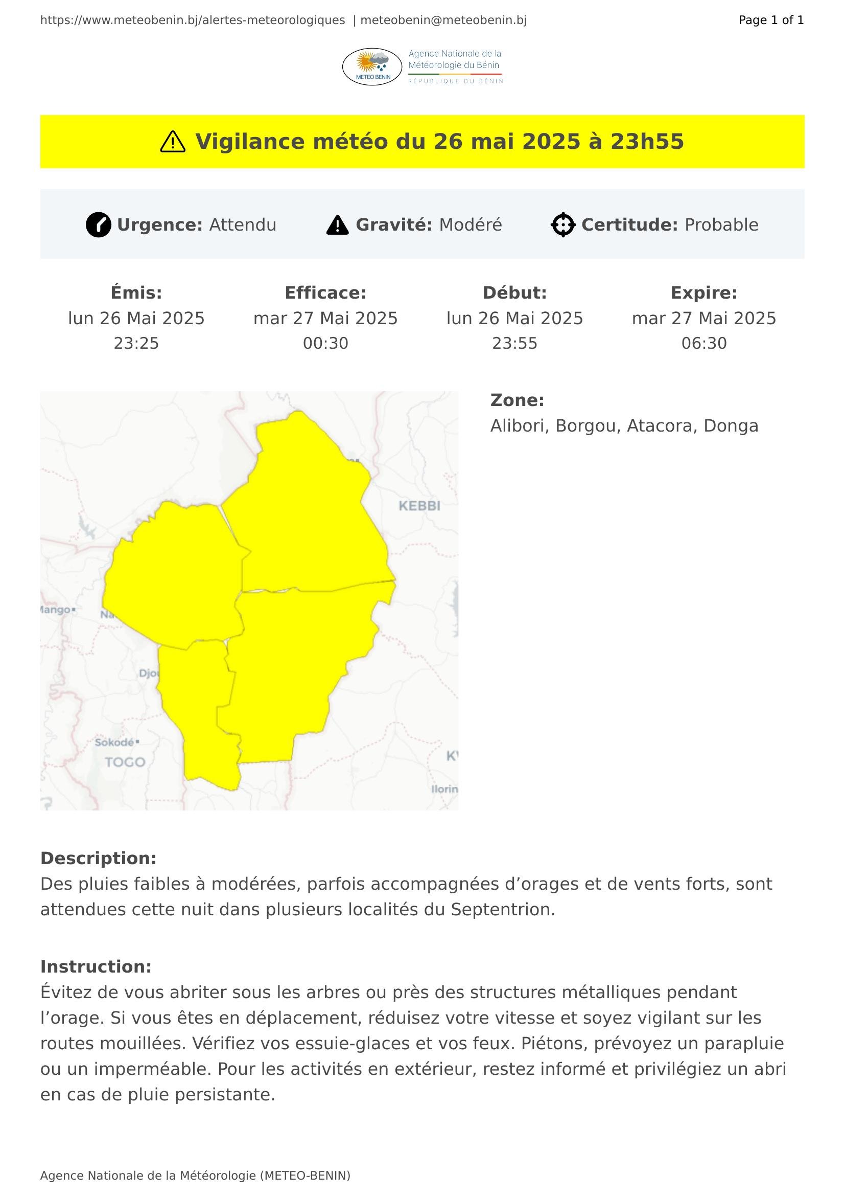 Vigilance météo du 26 mai 2025 à 23h55