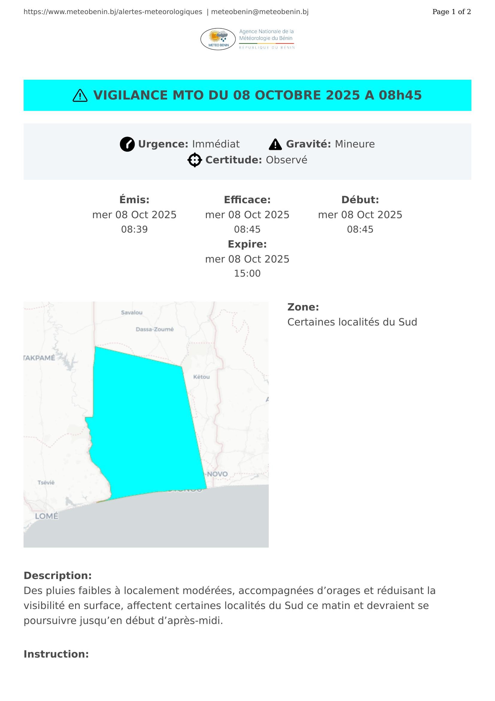 VIGILANCE MTO DU 08 OCTOBRE 2025 A 08h45