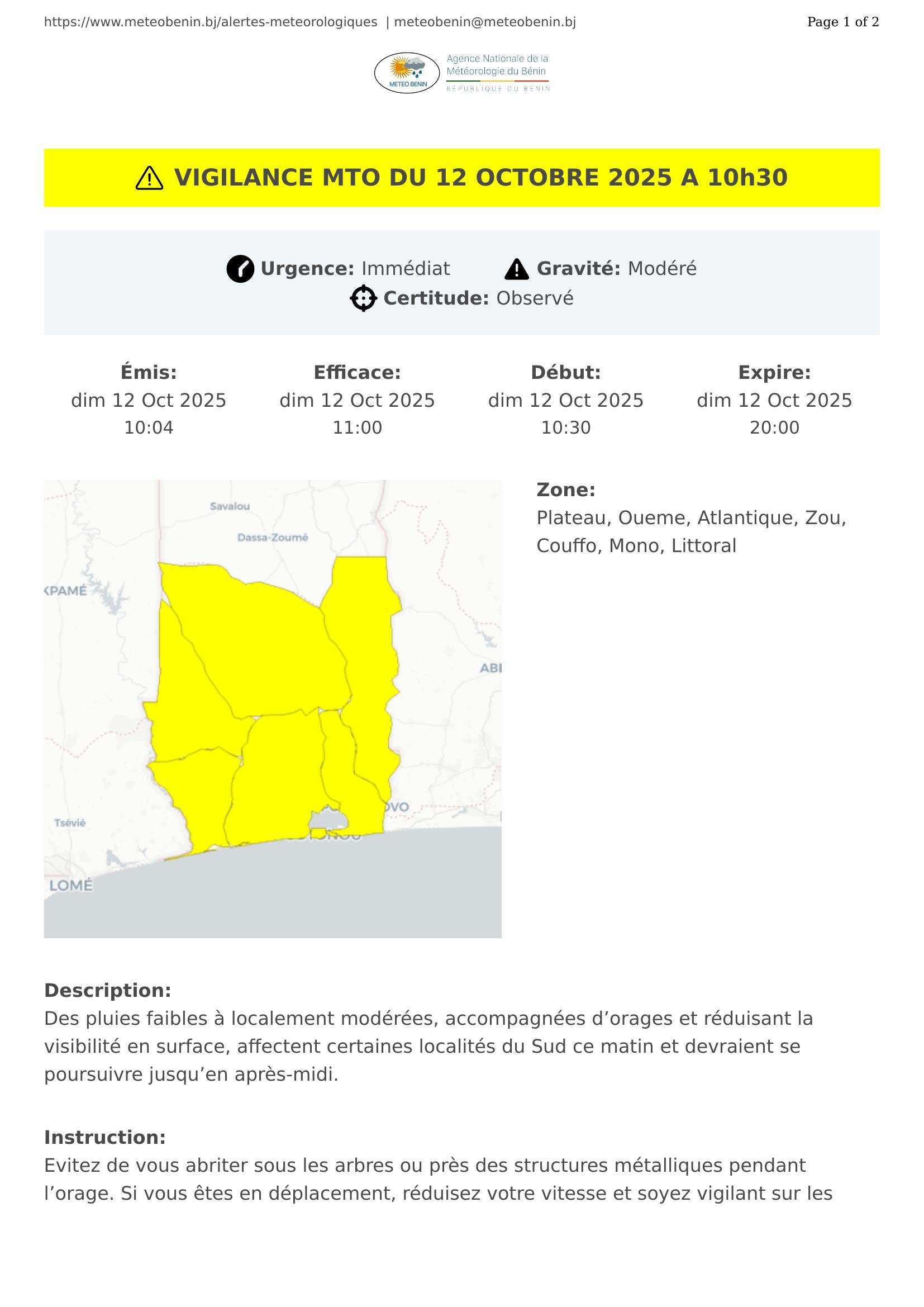 VIGILANCE MTO DU 12 OCTOBRE 2025 A 10h30